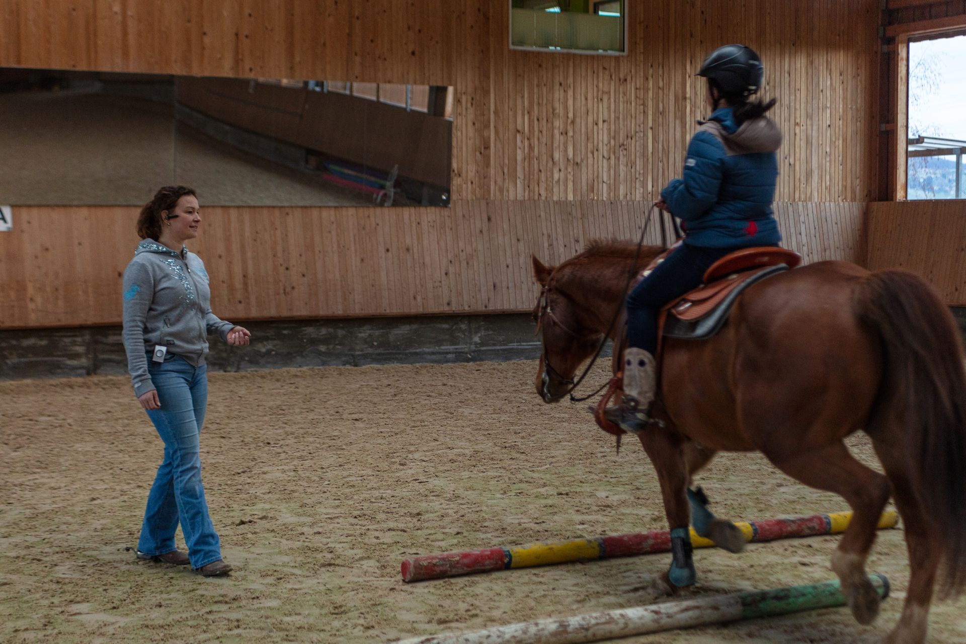 Der Unterricht findet je nach Wetter und Wünschen auf dem Reitplatz oder im Gelände statt.